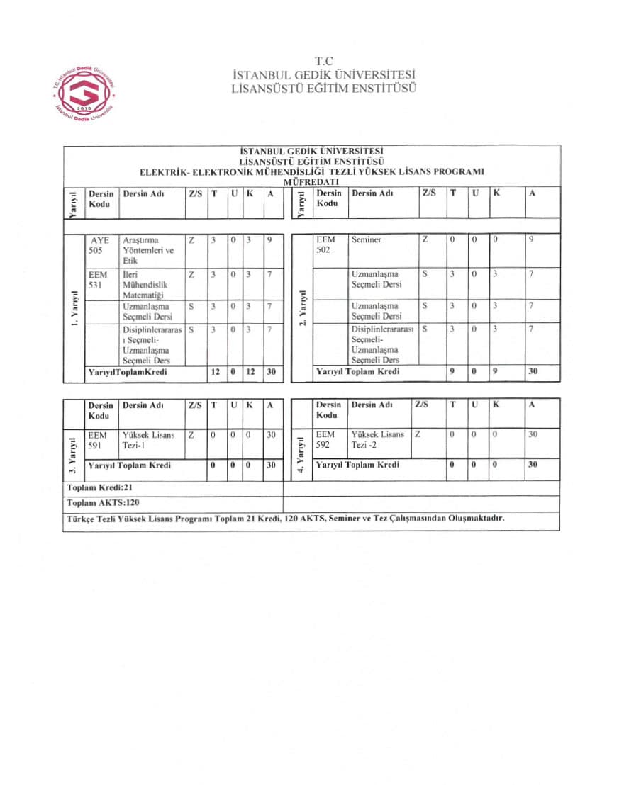 Elektrik-Elektronik Mühendisliği Yüksek Lisans Programı, sektörel talepler ve çağdaş Elektrik-Elektronik Mühendisliği gereklilikleri gözetilerek tasarlanmıştır ve birçok konuda hem teorik hem de pratik eğitimleri içermektedir. Bu programın esas amacı, öğrencilere bilimsel yöntemlerle bilgi edinme, bu bilgiyi derinlemesine analiz etme ve elde edilen bilgiyi etkili bir şekilde yorumlama becerilerini kazandırmaktır. Öğrenci merkezli bu eğitimde, alınacak dersler öğrencinin ilgilendiği ve derinleşmek istediği konular üzerinden, danışmanın rehberliğinde belirlenir.