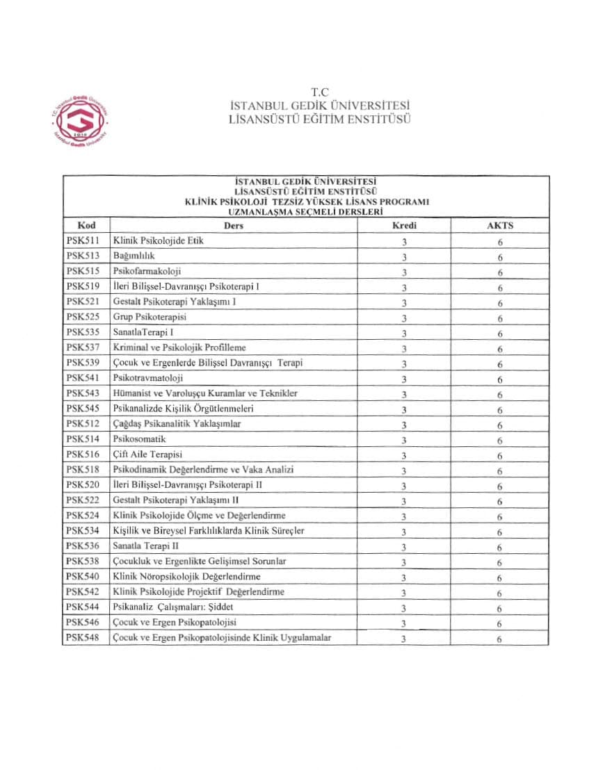 Merhabalar, Klinik Psikoloji Tezsiz Yüksek Lisans Programı ücret tablosuna ulaşmak için tıklayınız: https://yl.gedik.edu.tr/bahar-donem-ucretleri
