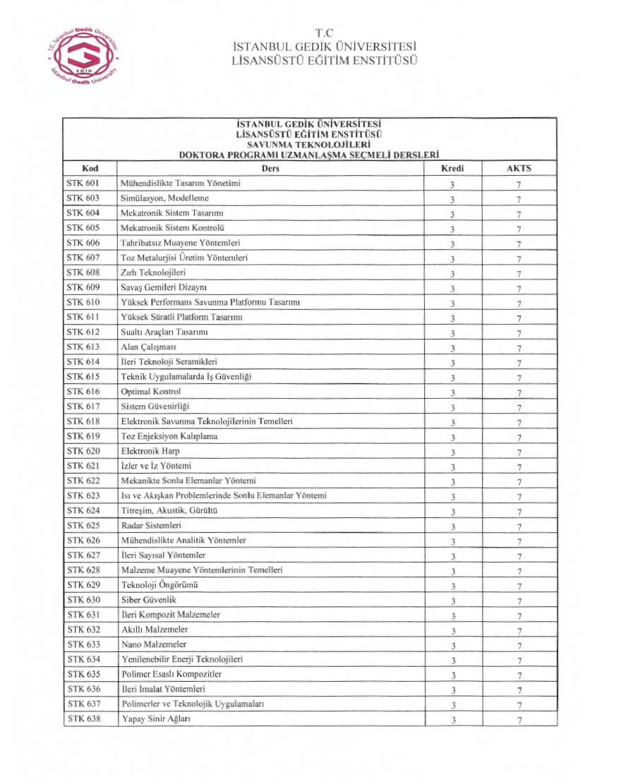 Bu amaçlar doğrultusunda kurulan Savunma Teknolojileri Doktora Programı çalışmalarını disiplinlerarası bir yaklaşımla yürütmektedir. Programımızda malzeme bilimleri, elektrik-elektronik teknolojileri, kontrol sistemleri, denizaltı teknolojileri, optik ve lazer gibi teknolojiler üzerinde araştırma yapmayı sağlayan çeşitli disiplinlileri bir araya getiren birçok ders mevcuttur.