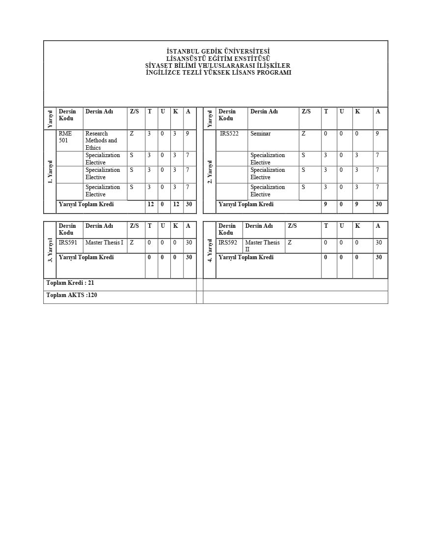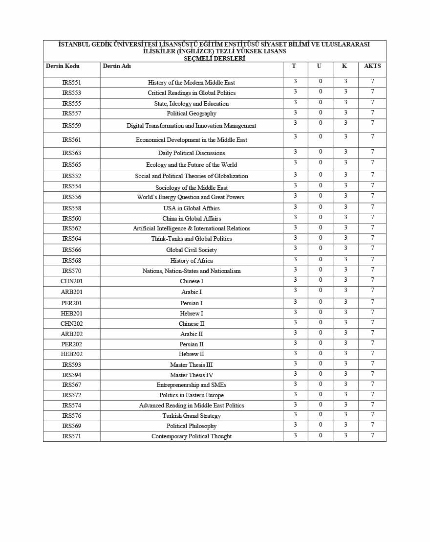 Program, öğrencilere farklı seçmeli dersler sunarak ilgi alanları ve çalışmak istedikleri sektörlere yönelik uzmanlaşma fırsatı sunar. Ayrıca, öğrenciler tez yazma süreciyle birlikte araştırma yeteneklerini geliştirme fırsatına sahip olurlar.