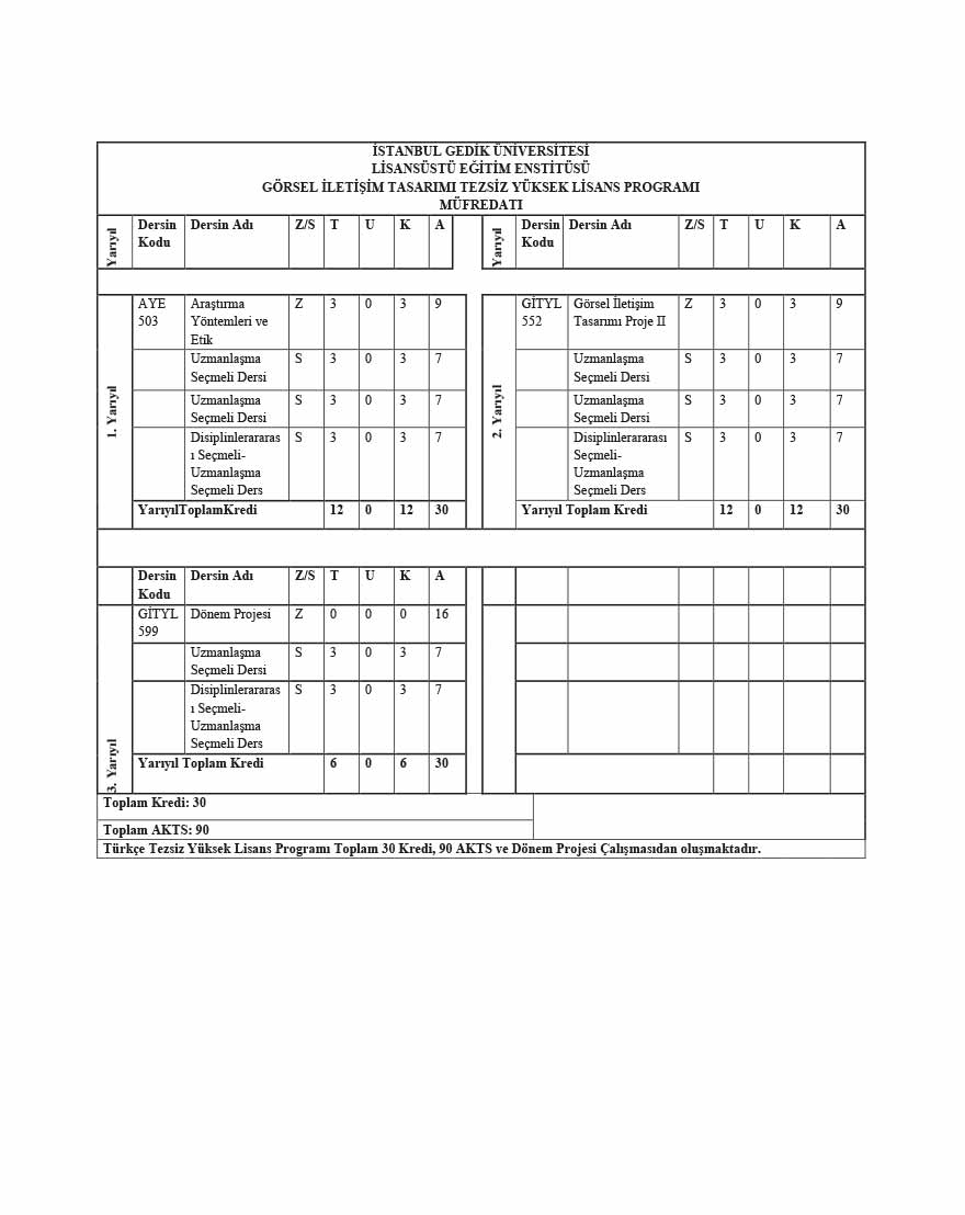 Yüksek lisans programımız, toplamda 30 kredi değerinde 10 ders ve bir dönem projesiyle şekillenmektedir.
