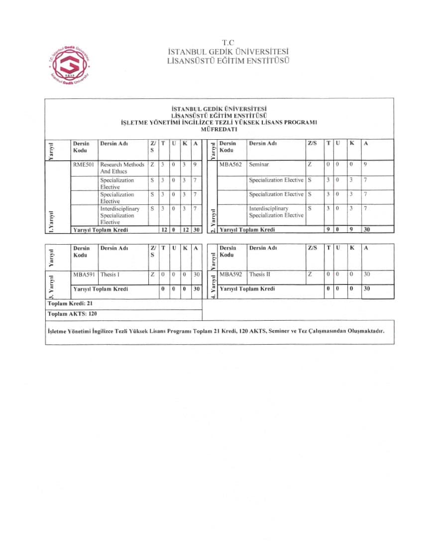 İşletme Yönetimi (MBA) İngilizce/Tezli Yüksek Lisans Programımız, günümüz iş dünyasının karmaşıklığını ve sürekli evrimini ele alarak, öğrencilere kritik düşünme ve özgün bilimsel araştırma yetenekleri kazandırmayı hedefler. Programa alan farketmeksizin lisans diplomasına sahip bireyler başvurabilmektedir.
