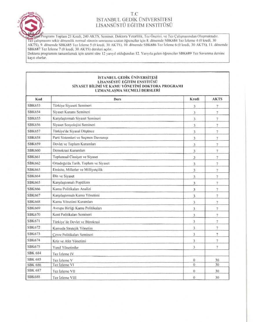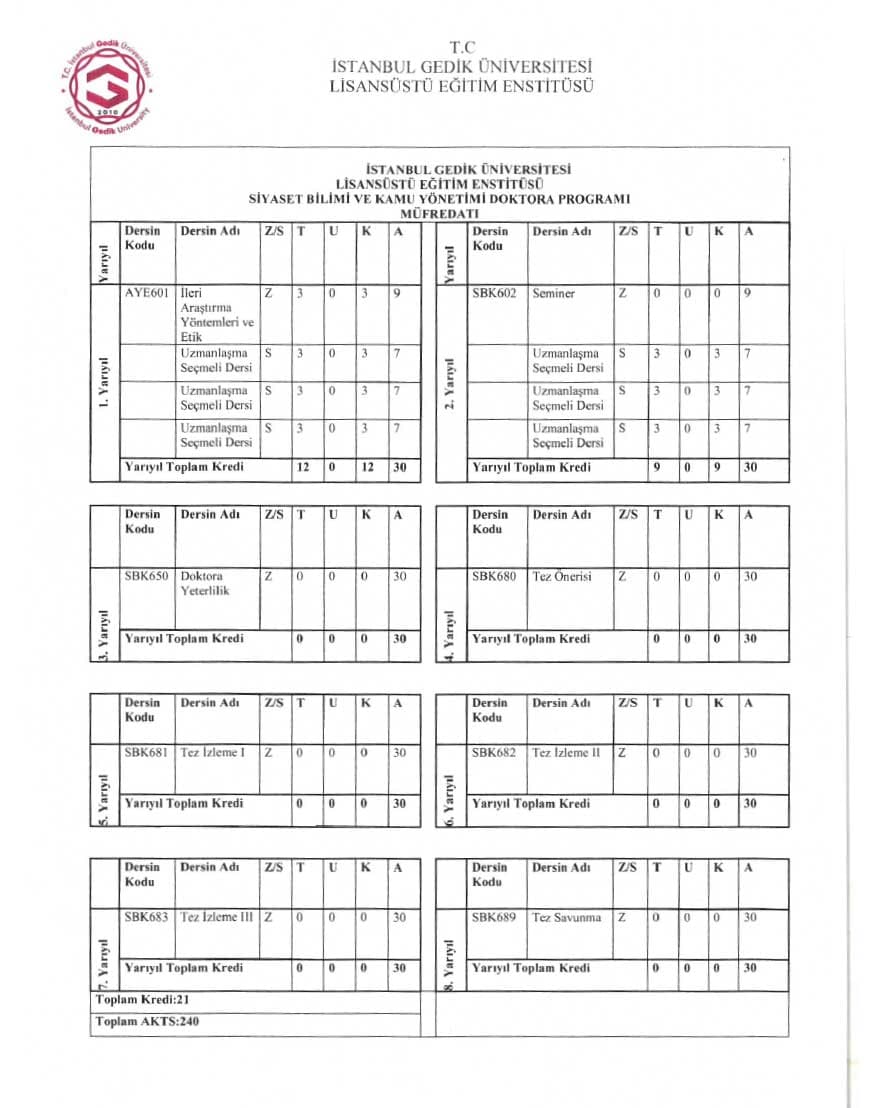 İstanbul Gedik Üniversitesi Siyaset Bilimi ve Kamu Yönetimi Doktora Programı, öğrencilerimize alanında üst düzey teorik bilgi ve beceri birikimi edinmelerini, bağımsız araştırma yürütme ve araştırma ekiplerine liderlik edebilme becerilerini geliştirmelerini ve böylece yurt içi ve dışında bilime katkı sağlayacak düzeye erişmelerini sağlamaktadır.